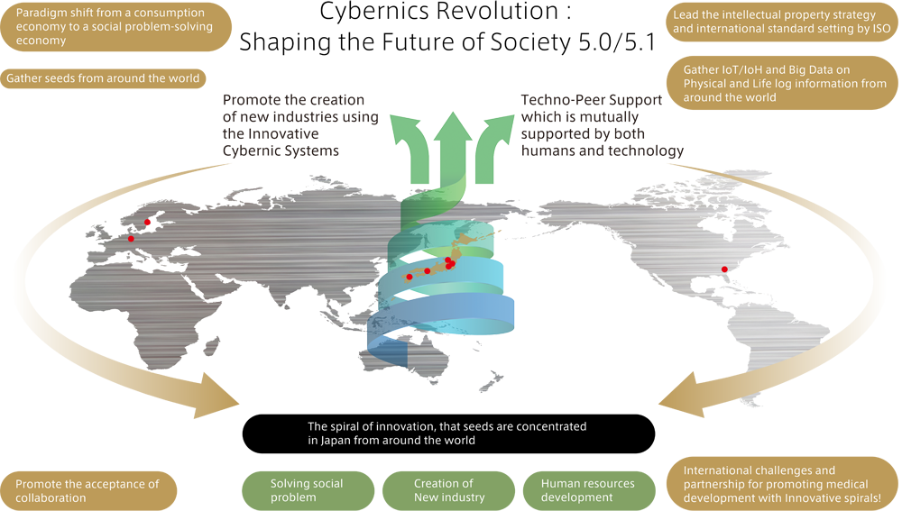 We are dynamically developing “Cybernics” by collaborating and cooperating with several different departments within the University of Tsukuba, as well as with other domestic and overseas universities and various private industries such as CYBERDYNE INC.We propose a “Techno-Peer Support”, which is mutually supported by both humans and technology, and challenge to accomplish our mission creating “Society 5.0/5.1” by our comprehensive organization, ‘Center for Cybernics Research’.